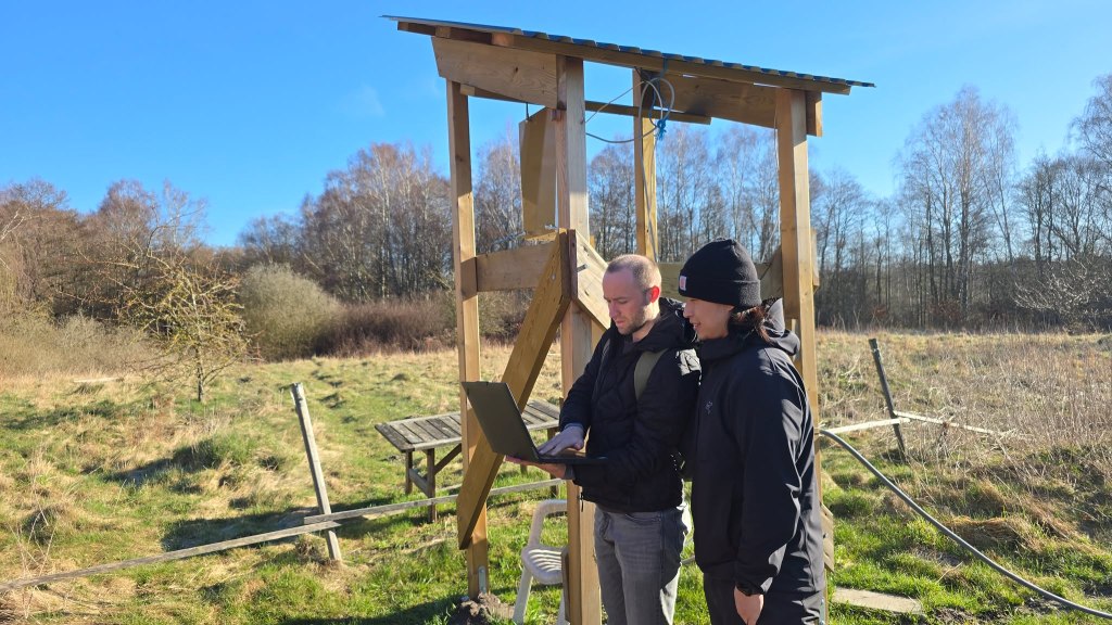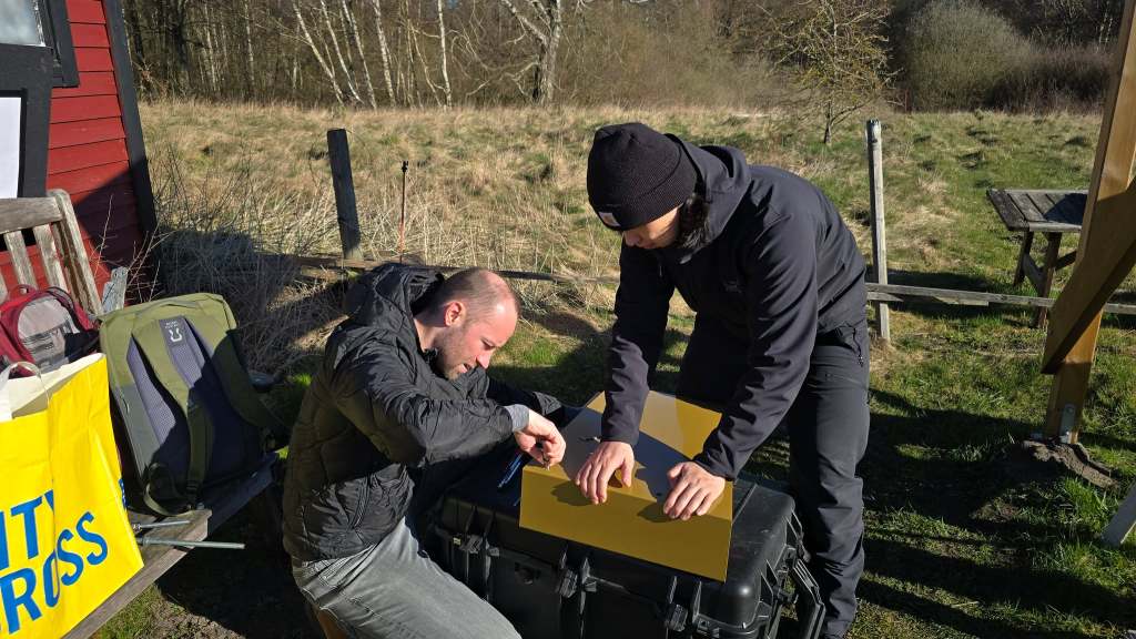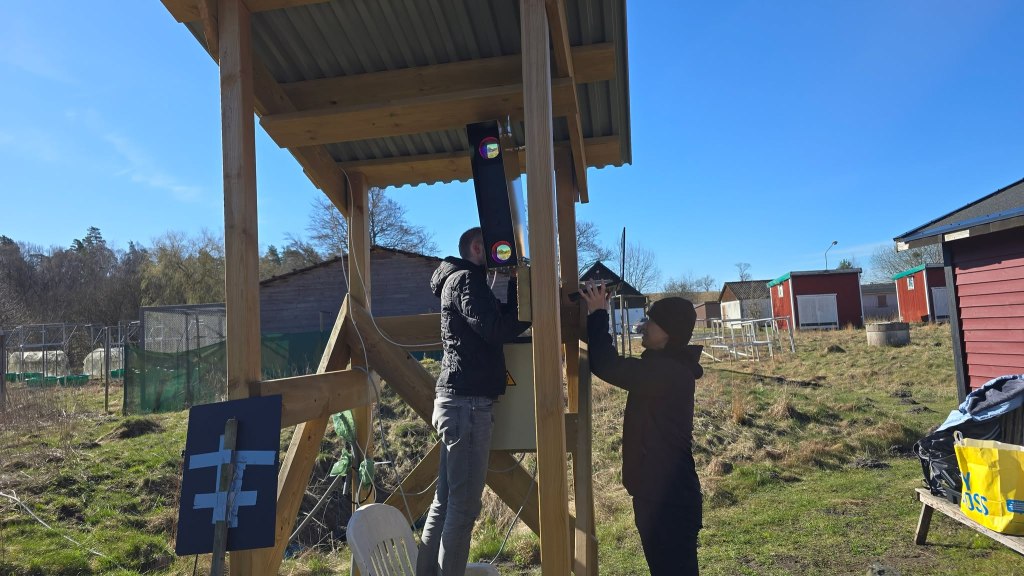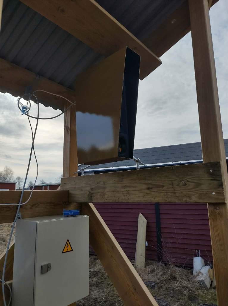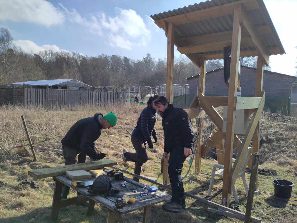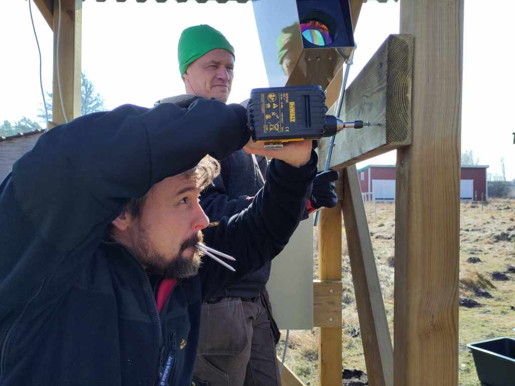 Finalized LiDAR tower, with photo credits to Mikkel Brydegaard, Timotej Žuntar, and Leonard de Causmaecke, February 3, 2026.